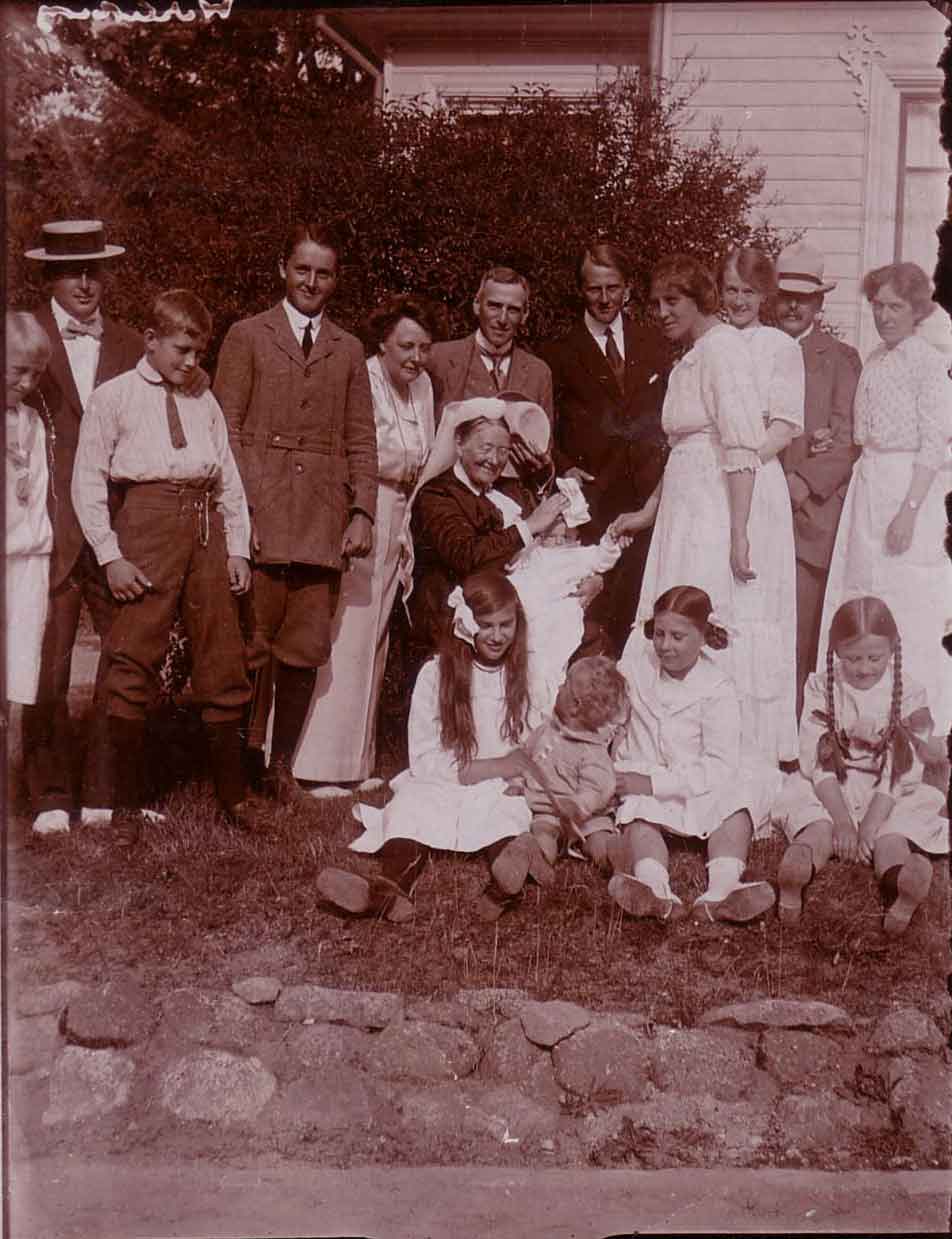 Sitting: "Mama" (Jemima) with Marianne on her lap, Hillevi, Peter, Mona, Dagmar.