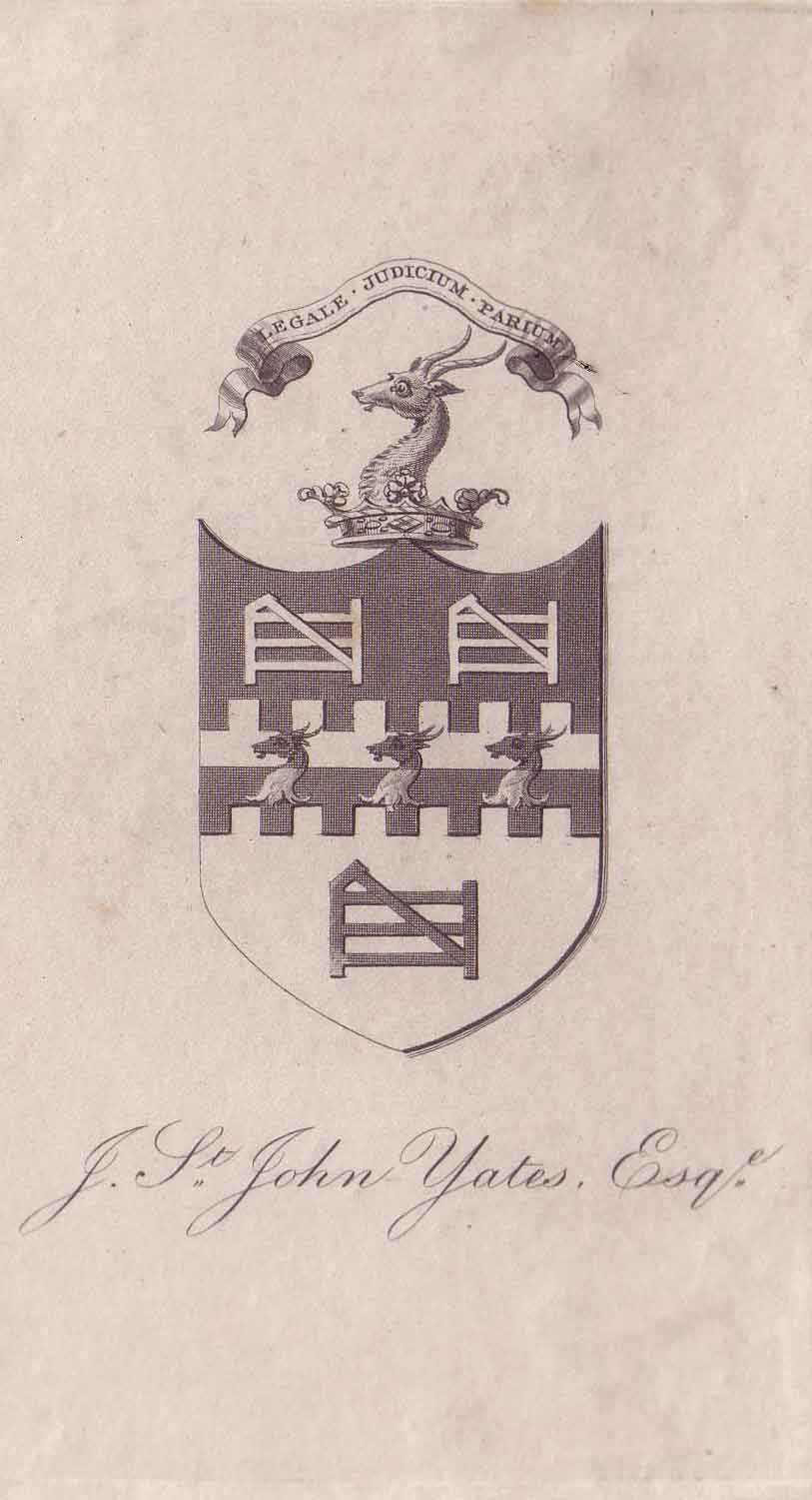 Joseph St.John Yates of Wellbank, Sandbach b.10 or 16 October 1808 at Chancery Lane London d.2 March 1887 Sandbach, Cheshire [crest and picture] .